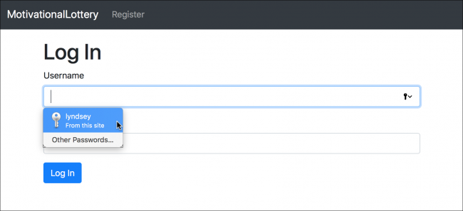 点击Username field后,您的网页应显示您在iOS应用中注册时保存的相同凭据。