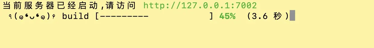 format: ` ٩(๑❛ᴗ❛๑)۶ build [:bar] ${chalk.green.bold(':percent')} (:elapsed 秒)`,