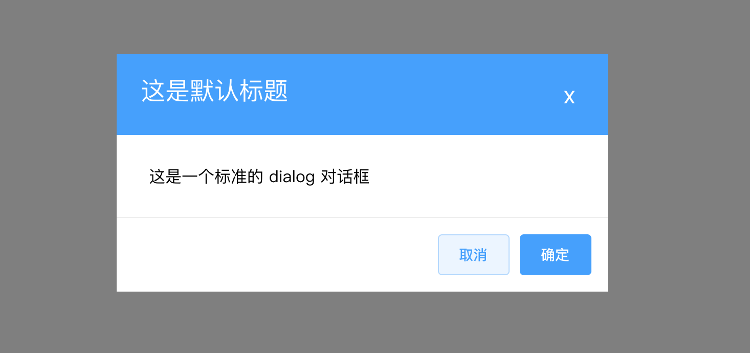 这个大家都见过,一个标准的 dialog 对话框,项目中也经常使用到,我们把它抽出来做成一个组件如下: