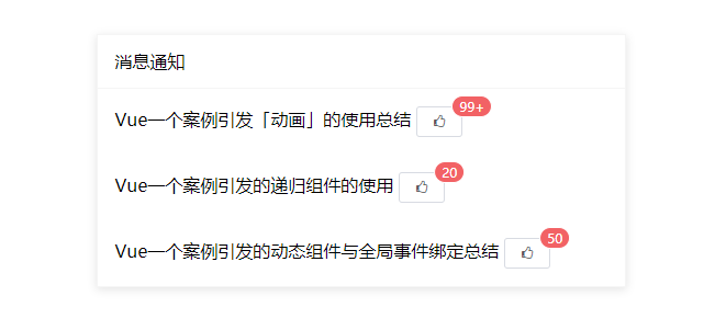 画风一转,下面我们把它变成一个消息通知列表,可以看到每个文章的点赞数量。
