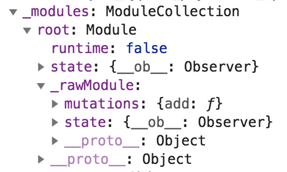 其中的getNestState,用于根据路径获取相应的state,在获取parentState之后,将module.state挂载在parentState[moduleName]上。