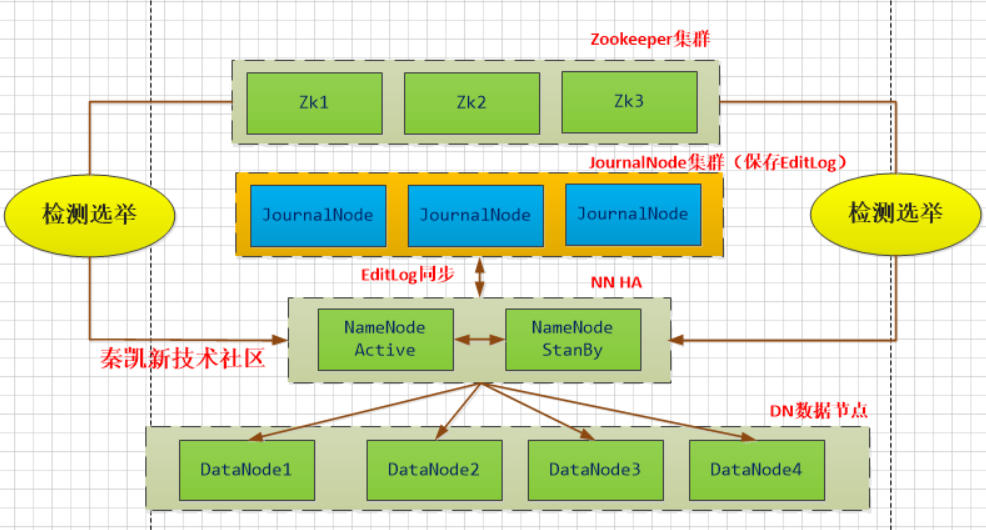 - 要完成HA,除了元数据同步外,还得有一个完备的主备切换机制,Hadoop的主备选举依赖于ZooKeeper。