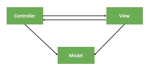 让我们再来看一下项目中常见的变种MVC 中,M、V、C三个模块之间的关系图: