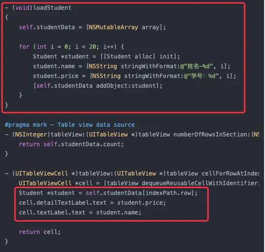 Student *student = self.studentData[indexPath.row];