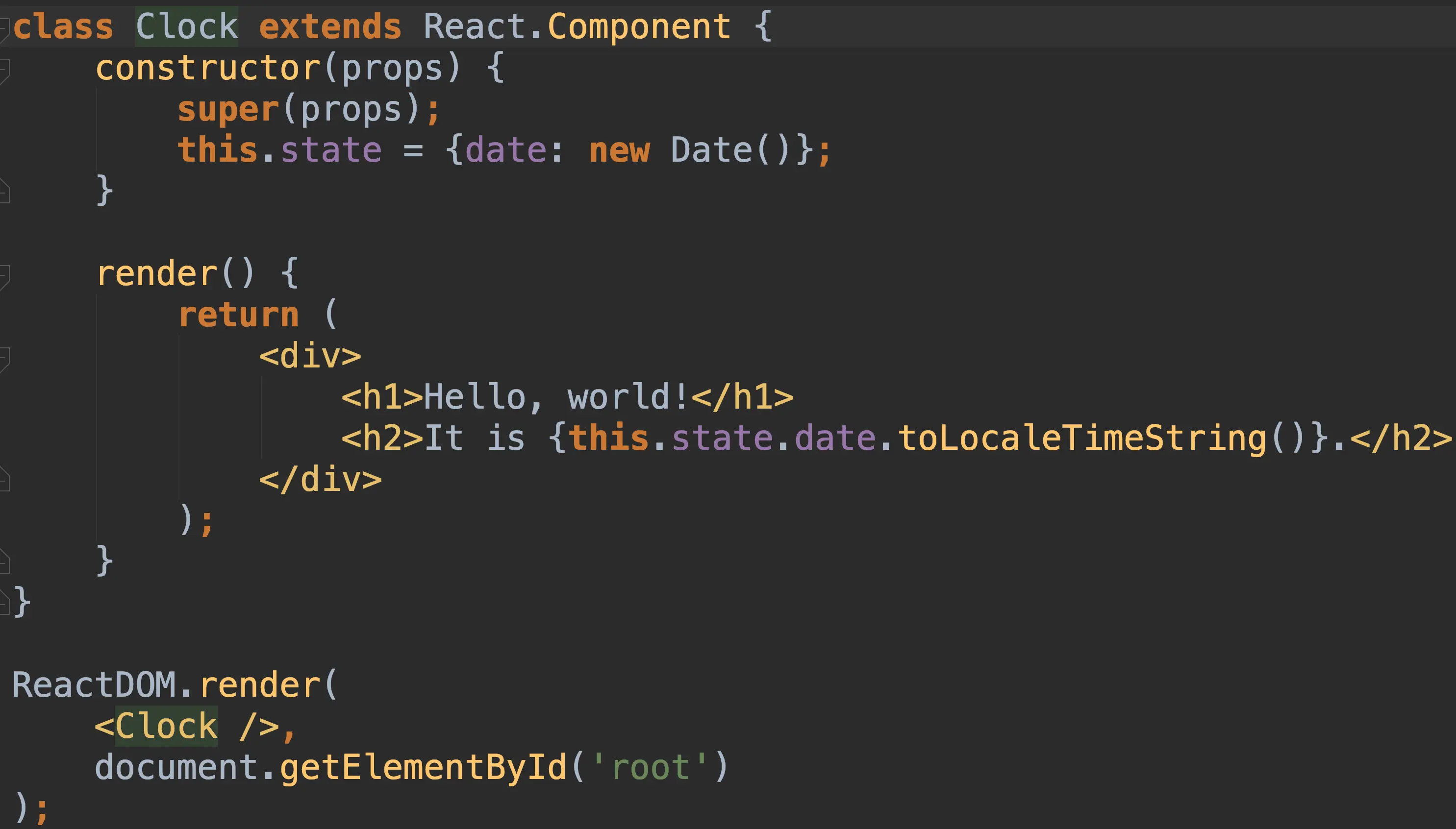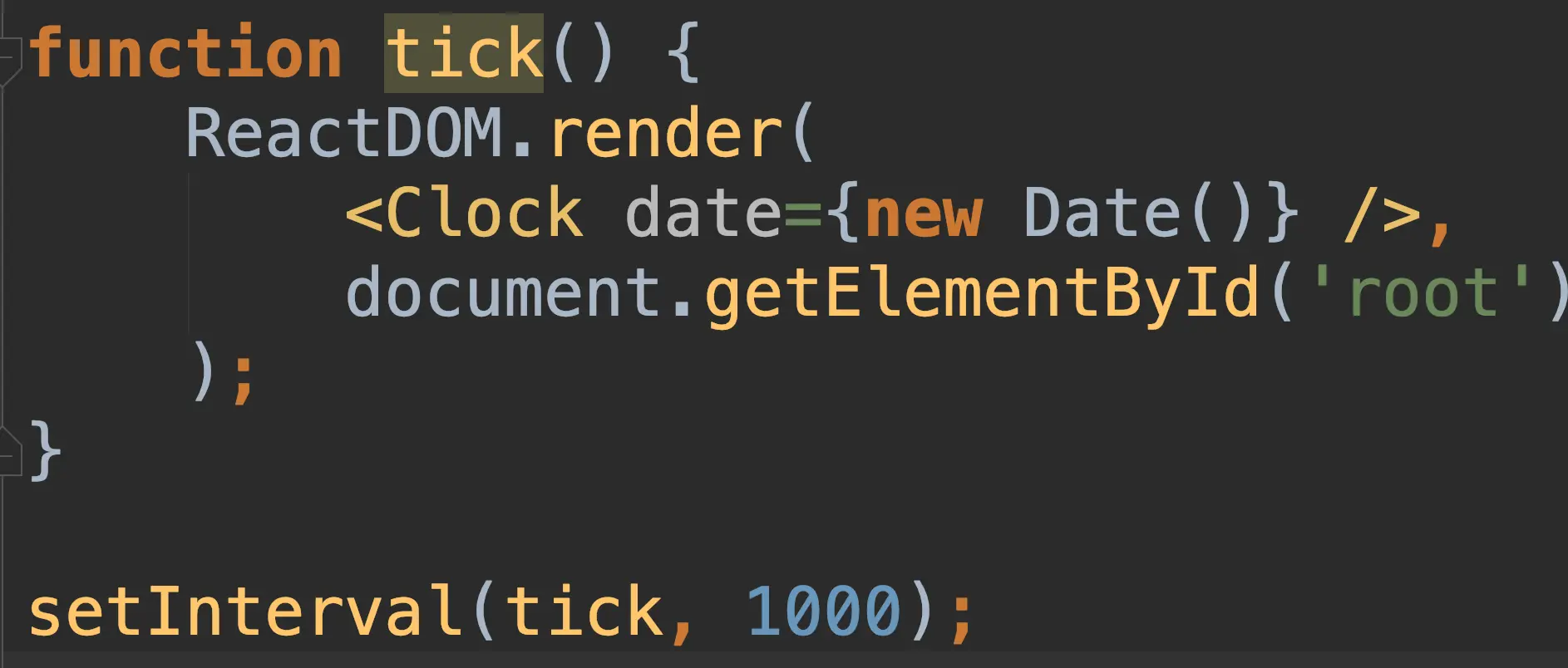 每当Clock组件第一次加载到DOM时,我们都想生成定时器,这在React中被称为挂载