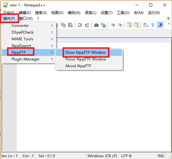 选择 「插件」 --> 「NppFTP」 --> 「Show NppFTP Window」