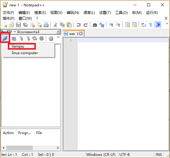 点击NppFTP插件栏左侧的闪电那个图标,选择刚刚创建的连接,即可连接到虚拟机。之后再打开需要编辑的文档就可以尽情的玩耍了。