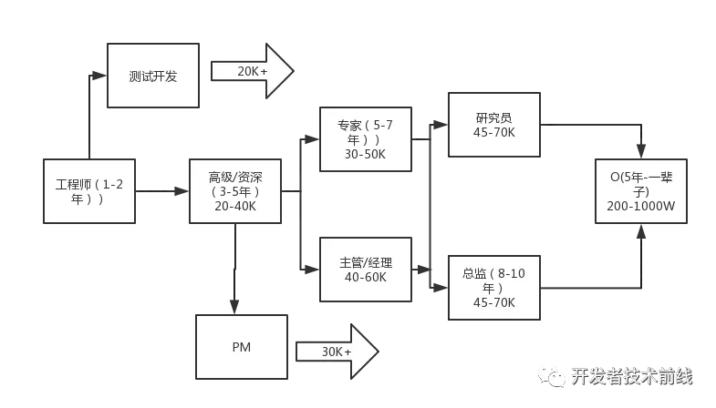 暂且不看移动开发的出路,就按目前程序员的普遍发展,很多人会一直朝着技术专家目标出发,但是,大部分人在还到没技术专家的时候,就半路夭折了。