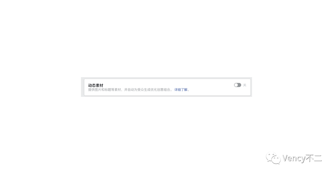 可能有人会问,动态素材看起来和广告组没什么关系,为什么不放在广告下进行设置?主要原因是动态素材对广告组的设置要求较多,不符合的广告组不能使用动态素材,例如对优化目标和付费方式有要求,版位必须是facebook或audience network,对预算和竞价也有要求。而对广告系列则只有营销目标上的要求,即转化量、移动应用安装量、链接点击量三者可使用动态素材。所以使不使用动态素材对广告组的设置影响极大,总不能让用户在设置广告的时候发现要用动态素材然后回去改广告组的设置。将来动态素材若是能够覆盖广告组的更多场景,也有可能在广告中设置动态素材。此外,动态素材是受众和创意的匹配,而受众设置属于广告组,可能放在广告组设置中更便于用户理解。