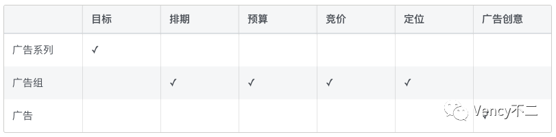 广告组包含一条或多条广告。在这一层级,需要设置广告组的预算、排期、定位受众等。分别针对每组目标受众创建广告组并设置竞价,则其下层包含的广告就会以相同的竞价定位相同的受众。这有助于针对各组受众控制广告花费、确定投放广告的时间,以及获得广告在各组受众中的指标。
