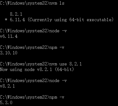- nvm install // 安装指定版本,如:安装v6.2.0,可nvm install v6.2.0