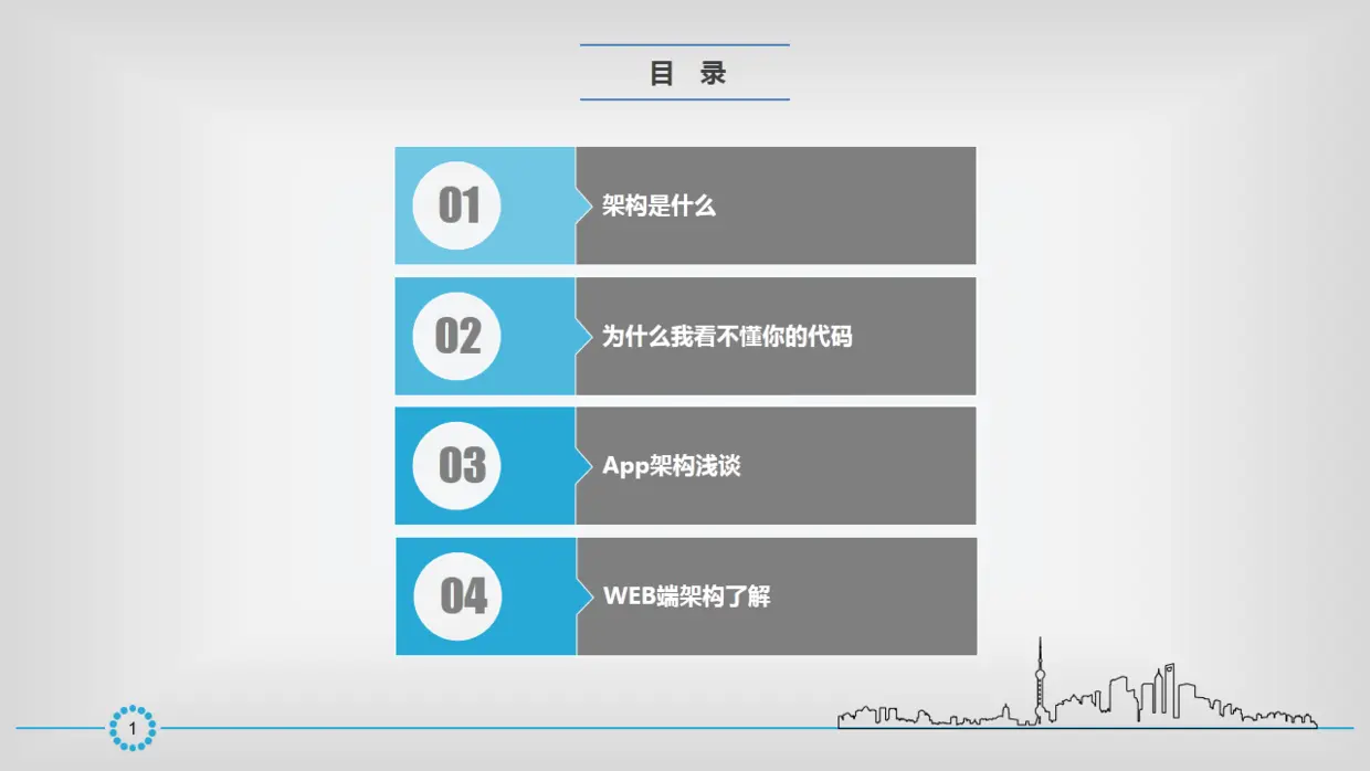 看完之后应该是可以总结出一些东西的:任何架构都不是一开始就很完善的,都是随着公司的发展,业务逻辑的发展,随着客户的需求,当前项目无法满足需求,才开始扩展。你不可能从第一步就把第十步的情况都考虑到,那你的项目写完都不知道要写什么时候去了。 所以在写项目的时候,用最简单的办法去处理当前项目的需求,把当前的每一个小功能尽可能的写的灵活利于扩展就可以了。切勿建立太过复杂的逻辑模型,因为你真的不确定,以后的项目会朝着什么方向发展。你确定你留着所谓的强大的逻辑模型,真的能够用得上吗? 当然这个是Web,相比Web来说,移动端的结构还真是比较简单一点。