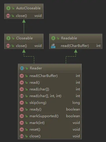 Reader 继承关系图和类方法,如下图: