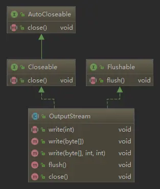 接下来看 InputStream、OutputStream、Writer、Reader 的继承关系图和使用示例。