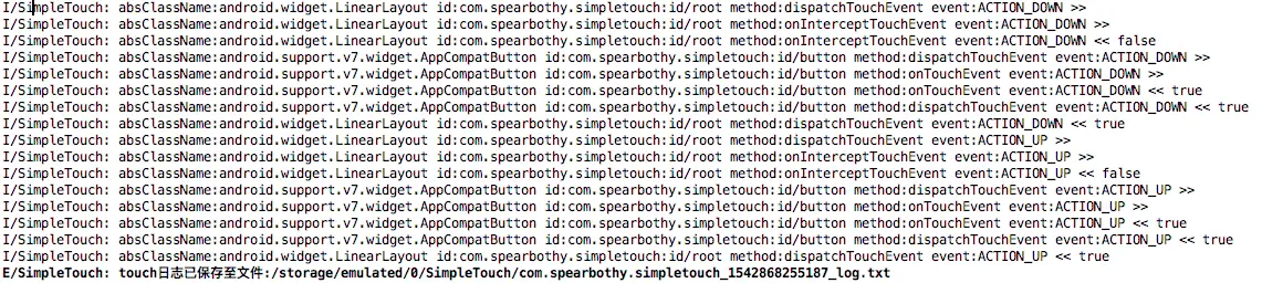 SimpleTouch为了解决如上问题而诞生,该库可以在运行时期打印完整的事件分发流程。