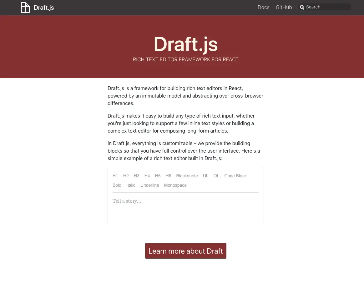 在React.js Conf 2016上面,Facebook开源了Draft.js,作为Facebook一众文本编辑需求的产品上面的新选择(状态发布,评论,Facebook Note,Messenger)。