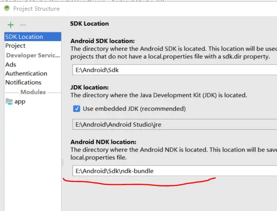 File/Project Structure/SDK Location/Android NDK location