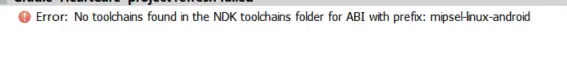 最近SDK Tools中安装了NDK,于是在最近的项目中的就出现了如图所示的错误:mipsel-linux-android的缺失