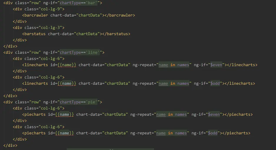 把传回来的数据全部放入scope中,因为看不到后台,也不知道传回来的具体格式是怎么样的,但应该就是echart里面可以直接拿来用的格式。