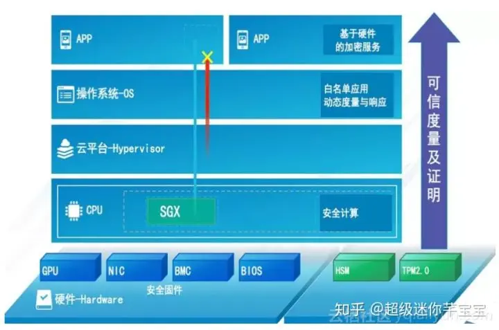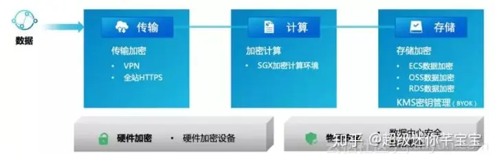 阿里云在云平台层面为客户提供默认高安全等级的基础设施能力,使客户可以放心的将数据存放和计算在可信的云平台上。值得特别指出的是,阿里云在云平台层面会对硬件和固件的安全进行加固和扫描,并使用TPM2.0技术来提供可信的度量和证明云平台底层的安全计算环境。同时阿里云具备基于硬件加密机(HSM)和芯片级别(SGX )的安全计算能力。