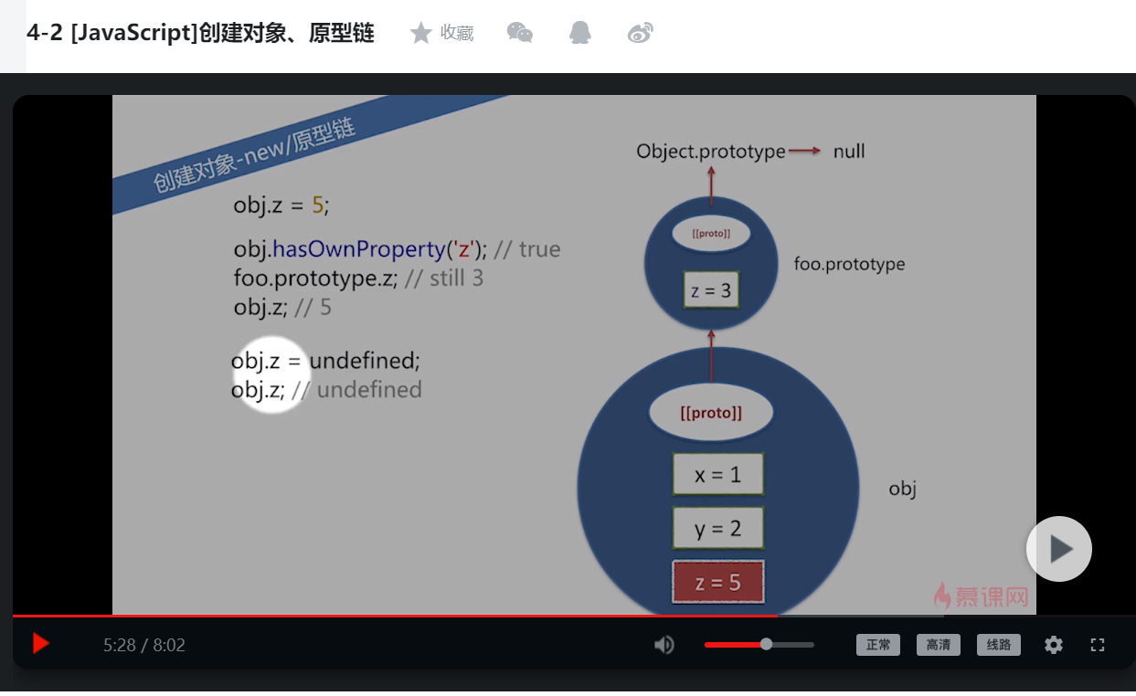 obj.z赋值为5时,是在obj上新建了一个属性,赋值为5。不管它原型上的z属性。