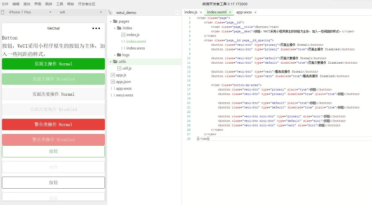 button、cell、dialog、 progress、 toast、article、actionsheet、icon等各式元素。使用
