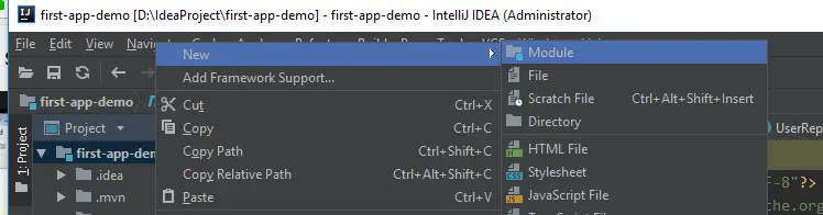 在项目中新建一个module: