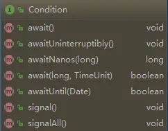 Condition需要和Lock联合使用,它的作用是代替Object监视器方法,可以通过await(),signal()来休眠/唤醒线程。Condition 接口描述了可能会与锁有关联的条件变量。这些变量在用法上与使用 Object.wait 访问的隐式监视器类似,但提供了更强大的功能,接口中定义的方法如下:
