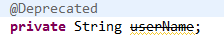 2,@Deprecated,使用该注解修饰的元素,会有警告信息。自定义类时对一些属性或方法采用该注解可以起到提示作用,因为用的时候代码会有道删除线。请看下图,是不是很熟悉。