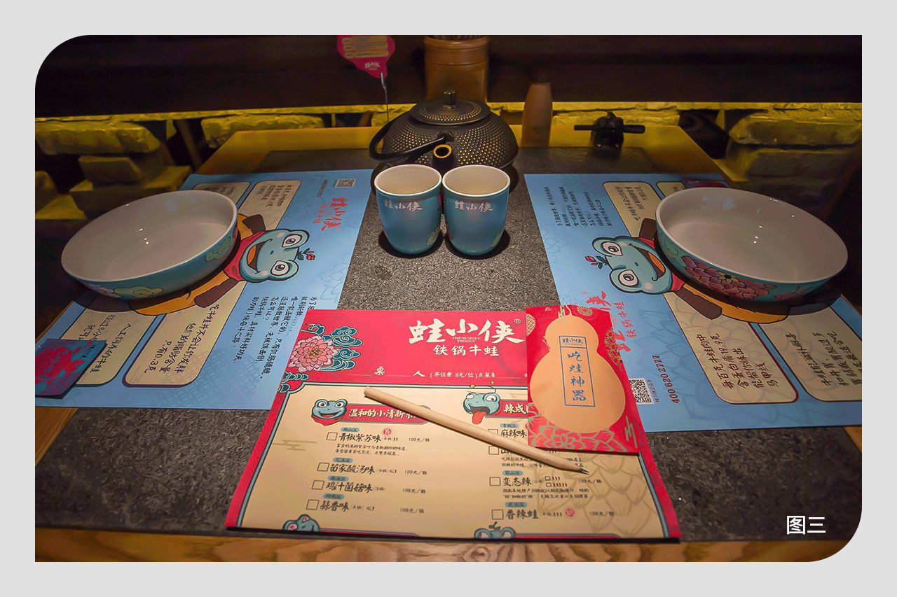 这是一家蛙小侠功夫主题铁锅牛蛙餐厅品牌,以“功夫”主题元素为切入点,在全国多个城市的商圈都有门店。