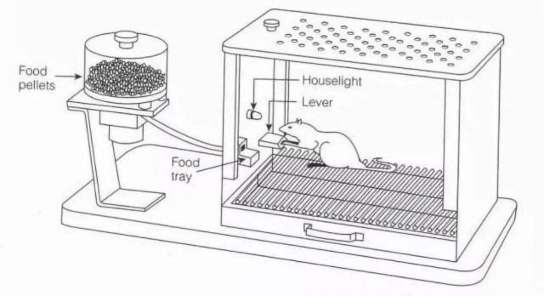 ▲ 斯金纳关于操作性条件反射作用的实验