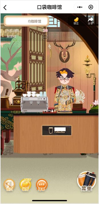 说回到产品设计上。某咖啡品牌就利用扮演咖啡馆老板的游戏,来达到产品传播和交易的目的。用户可装扮自己的咖啡馆,并邀请好友来店里买咖啡,这种游戏化的角色扮演让产品找到了无数免费的线上代理商。