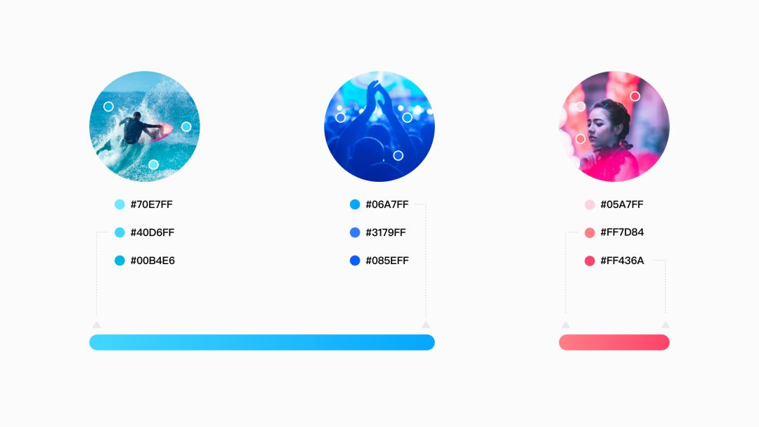同时,在品牌色上希望传递“更年轻”的品牌理念。我们大收集体现“年轻”的场景进行多轮讨论筛选,提取色调,结合情绪版,最终提炼并定义了我们的品牌色。