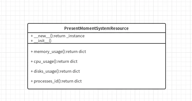 首先,我们应该给类想一个名字,就叫 PresentMomentSystemResource 吧,所以一个空的 UML 图就可以画出来了:
