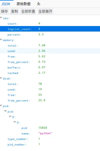 这些数据就是我们在视图类中 return 的 cpu、内存、磁盘以及进程信息数据。