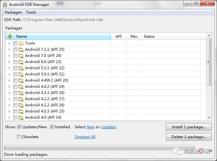 Android SDK提供了开发Android应用程序所需的API库和构建、测试和调试Android应用程序所需的开发工具,打开以下网址进行下载SDK Manager