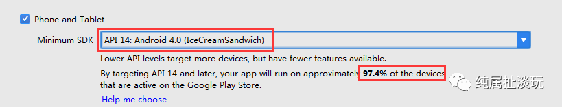 下面类似,我们只需要安装到Android 4.0即可,再往写不需要再安装了,因为Android4.0以下市场占用率不足5%,所以没有必要再去兼容