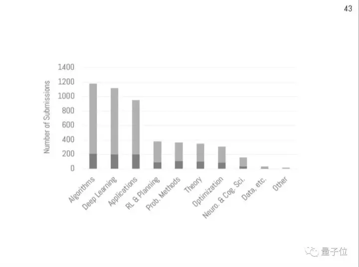 从这些论文所在的领域来看,最火的出人意料,竟然并非大家都在谈的深度学习,而是稍微宽泛一点的“算法”。另外,强化学习的热度虽然高的并不明显,但比去年有大幅上升。