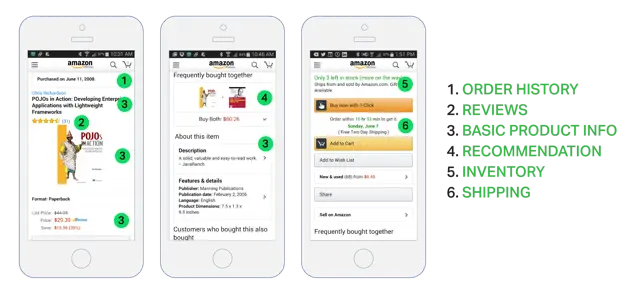 例如,下面的图展示了你在亚马逊Android客户端上滑动产品最终页时看到的信息。