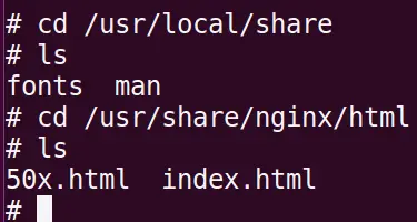 进入之后看到shell提示符#,我们就可以在nginx容器内执行一些常用命令了。