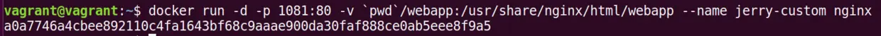 docker run -d -p 1081:80 -v `pwd`/webapp:/usr/share/nginx/html/webapp --name jerry-custom nginx