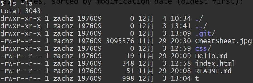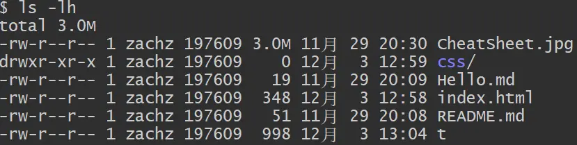 ls -1:每行列一条ls -a:列出所有文件,包括隐藏文件ls -la:列出所有文件及其详细信息(权限 所有者 大小 修改日期),示例:ls -lh:不包含隐藏文件的所有文件及其详细信息。文件大小用KB,MB等单位展示ls -lS:按文件大小降序排列ls -ltr:按修改日期排列(旧的靠前)
