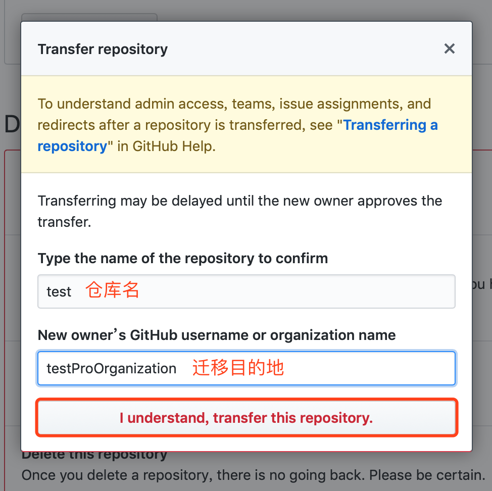 github项目移动到组织仓库 vony 2018-12-04 1,533 阅读1分钟 1. 进入仓库 2. 进入设置 3. 滑动到最底部 点击transfer 4. 输入仓库名和目的地~点击迁移 5. 迁移成功了~项目前面已经是组织仓库
