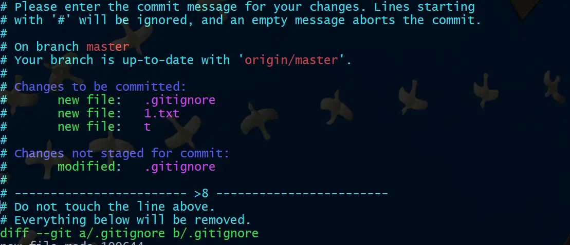 git commit -v:显示额外信息并进入vim模式提交备注。如下图所示: