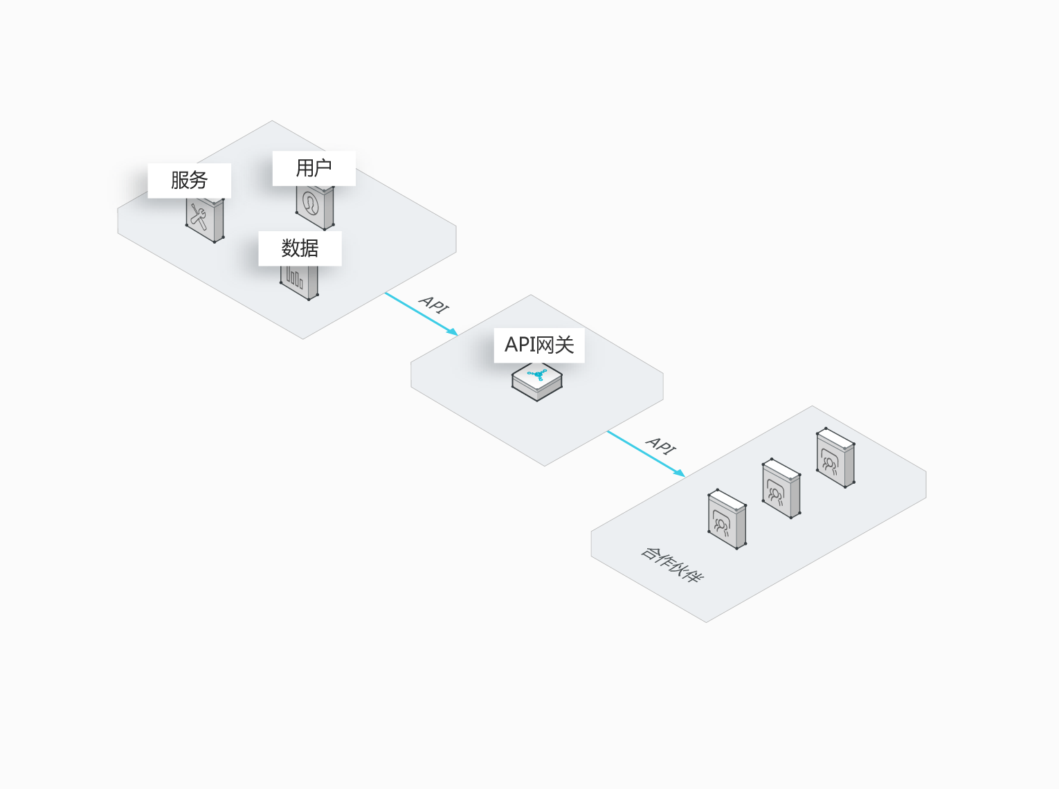 如今企业面临更多的挑战,企业发展需要可靠的合作伙伴。企业与合作伙伴以 API 的形式进行服务、能力和数据的交互,系统与系统直接对接,达成深度合作,建立牢固的合作关系。