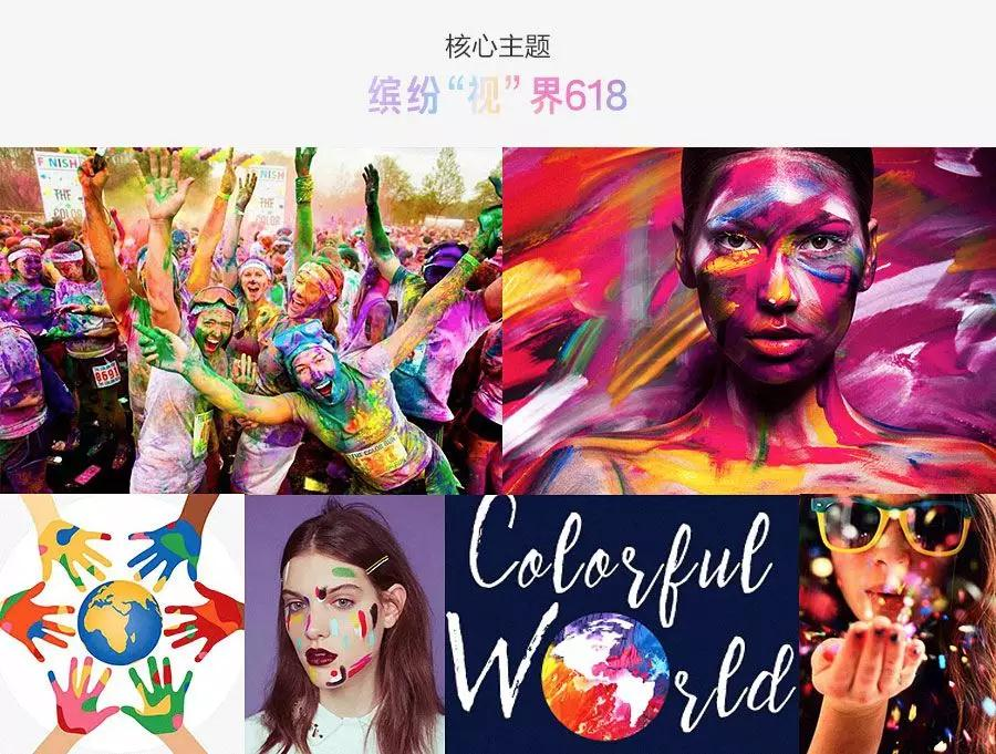 怎么搞?我们把运营的需求理解为希望用户去看见世界的美好,去发现生活中的新奇特,那什么可以代表世界的美好呢?我们找到一个世界上共通的认知:人类对色彩产生相应的某种感觉,是对这个世界认知和感情的基础,所以延伸出我们的主题:缤纷“视”界618,即去看(视)见世界的色彩。