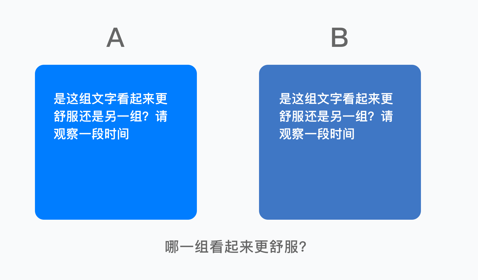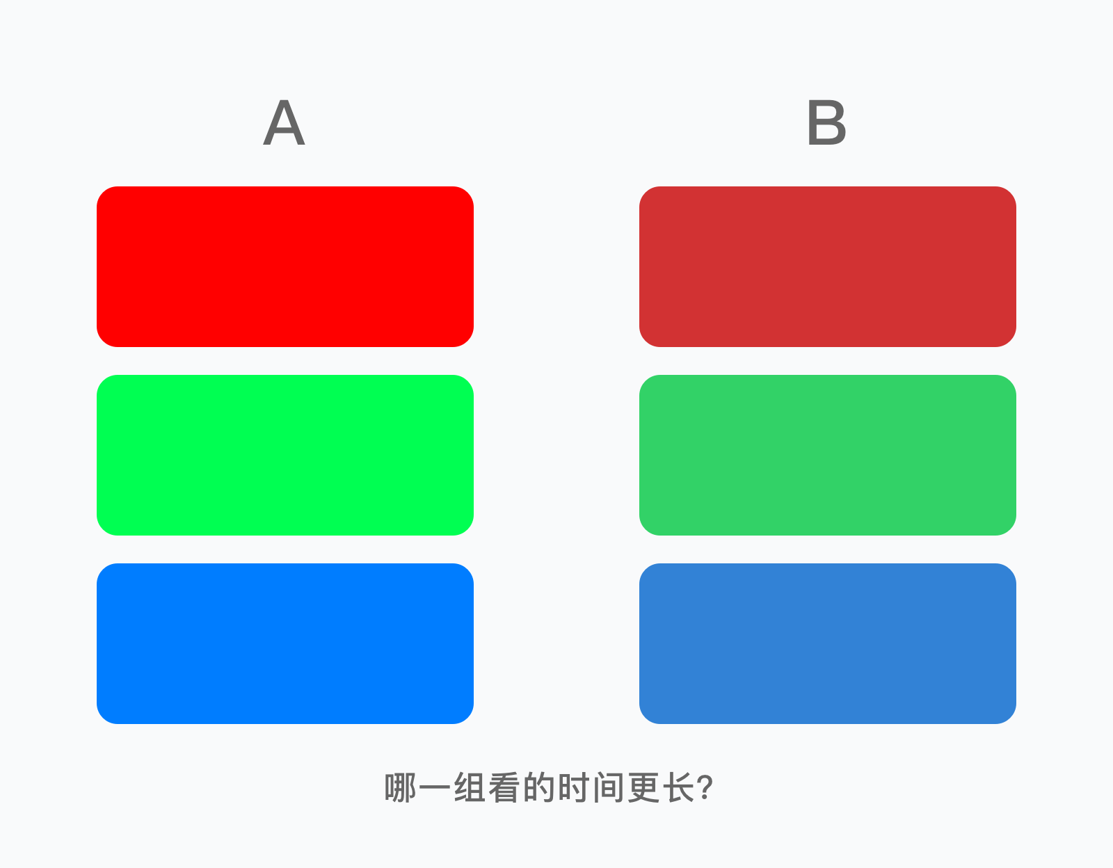我会发现对 B 组低饱和、低明度色彩的容忍程度更高,观看时间更久;而 A 组的色彩饱和度高、明度高,不一会我们就感觉眼睛疲劳不堪,再也不想多看一眼睛。