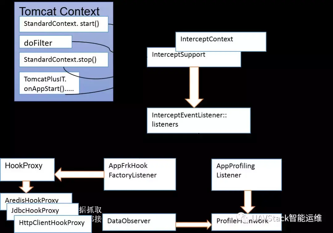 Profile数据和客户端监控指标主要通过InterceptSupport和hookProxy机制捕获和监控。
