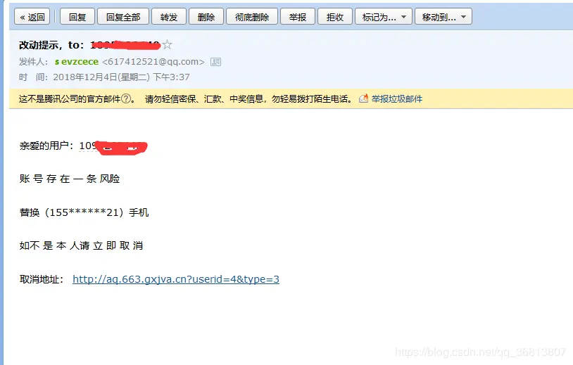 无聊中的我,收到一个邮件 里面告诉我 我的qq账号存在风险