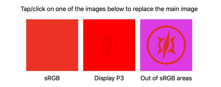 除此之外,苹果官方宣称新款 MacBook Air 的屏幕是全标准色域 (sRGB),比上一代提升了 48%。而 2018 新款 MacBook Pro 的屏幕是广色域 (P3),并且配备了原彩显示技术 (True Tone)。下面是一张从 MacBook Pro 截取的测试图片,在新款 MacBook Air 上是看不到第二个红色方块上的图案的,但是如果你正在使用配备了 P3 广色域的设备观看本篇文章,那么你能在第二个红色方块上看到一个指南针一样的图案(类似于图三)。